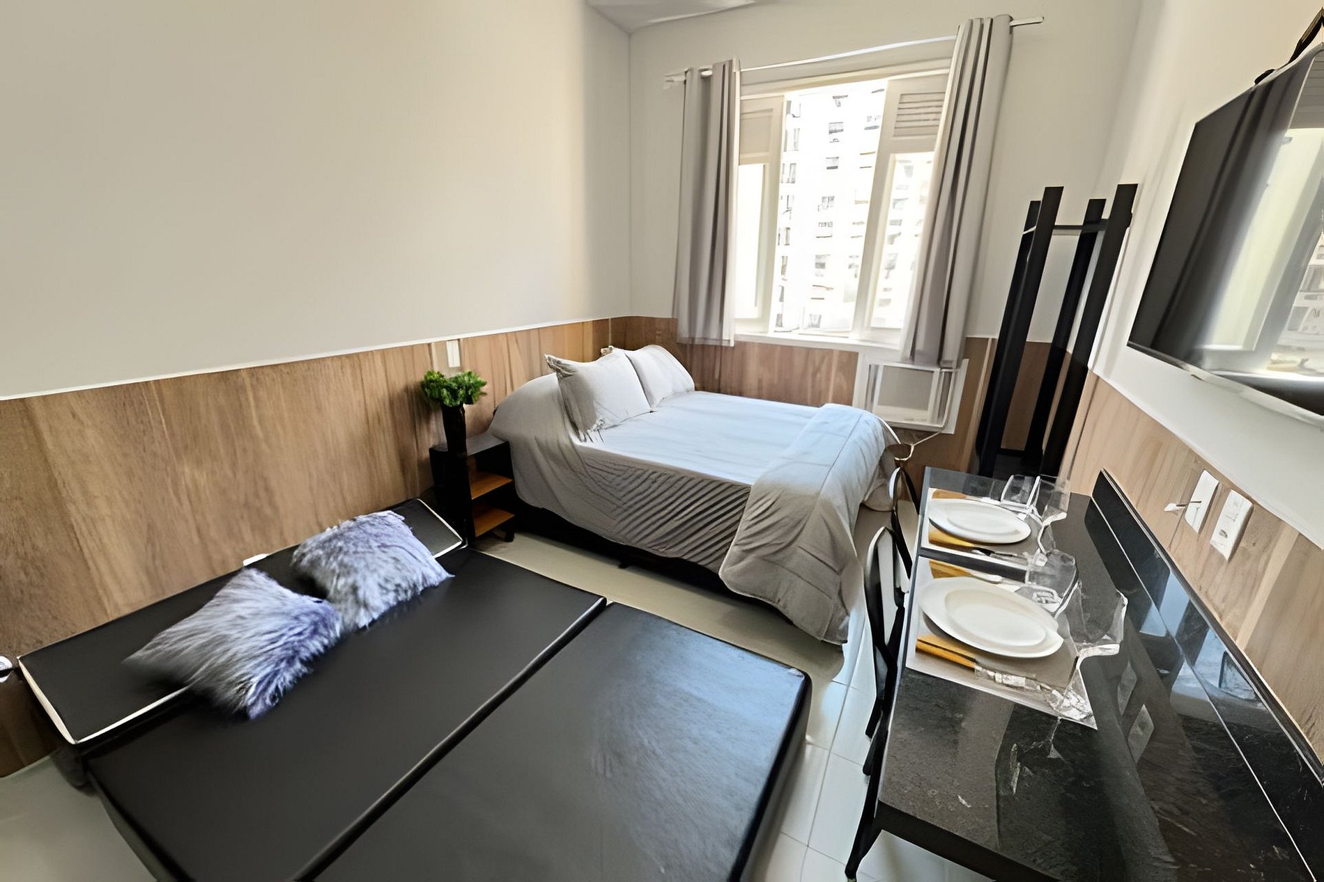 Localizacao privilegiada dentro da Galeria Ritz, a apenas 1 quadra da praia de Copacabana, este apt oferece tudo o que você precisa para uma estadia inesquecível: * Cama de casal e blackout * Sofá-cama: Ideal para acomodar um amigo ou seu filho. * Ar condicionado e ventilador de teto * Mesa de trabalho * Cozinha equipada com tudo o que você precisa para preparar suas refeições. * Wi-Fi excelente velocidade * TV Smart * Próximo a restaurantes, bares, mercados e metro! Aproveite e reserve