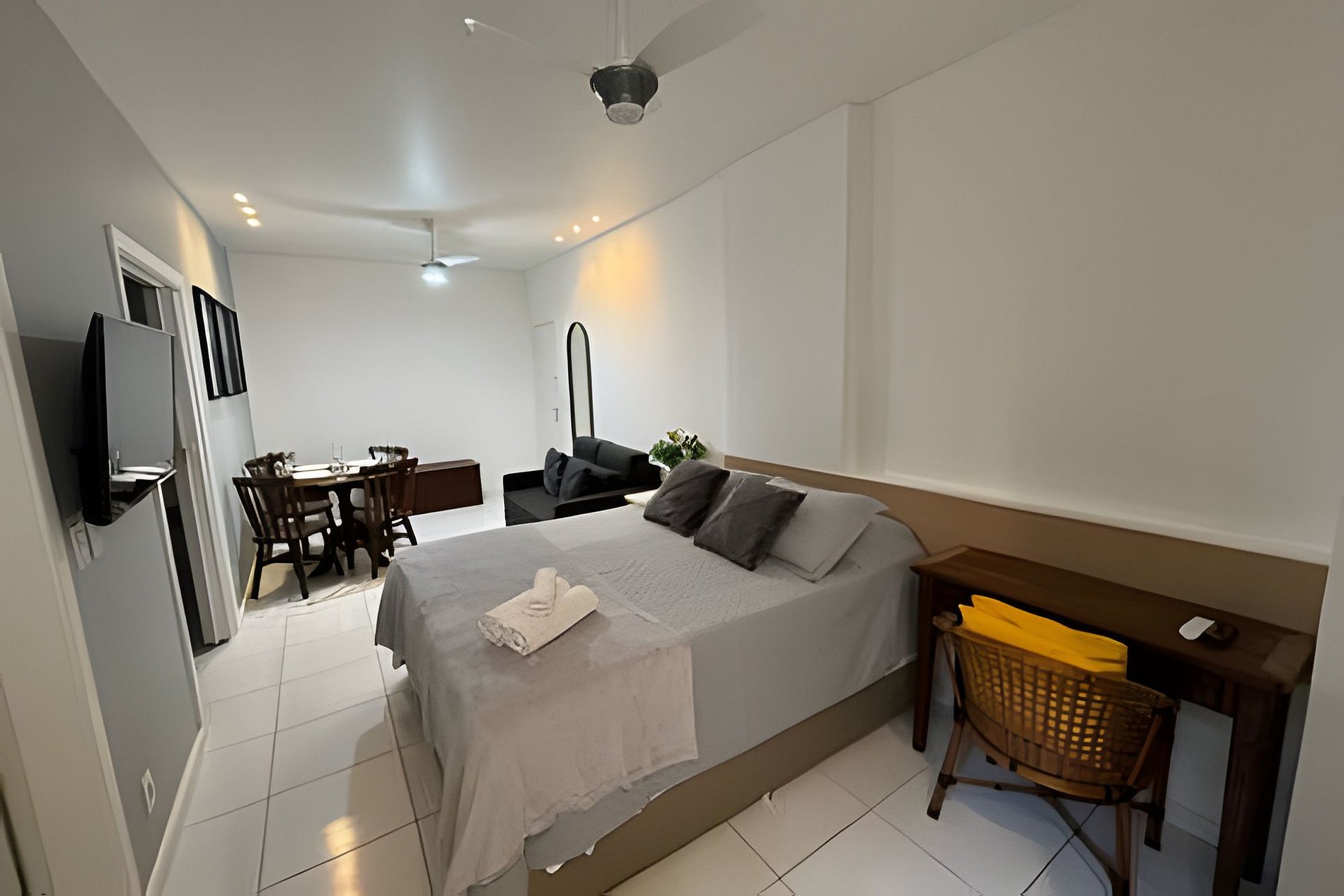 Apt recém reformado totalmente privativo ( nao é compartilhado)em localização incrível no coração de copacabana! Localizado apenas a uma quadra da praia e ao lado do icônico Hotel Copacabana Palace, você irá passar por dias inesquecíveis aqui. Ar condicionado, 2 ventiladores de teto, cama queen, sofa cama casal, mesa de jantar para quatro pessoas, maquina de lavar e secar roupa, fogão, forno, microondas, cafeteira e todo enxoval de cozinhha cama e banho para seu conforto e comodidade! Aproveite!